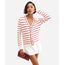 • Design clássico com padronagem listrada, decote V e fechamento frontal por botões.