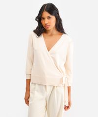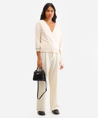 cardigan transpassado feminino de tricot bege