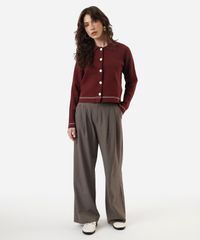 casaco feminino de tricot com listras vinho