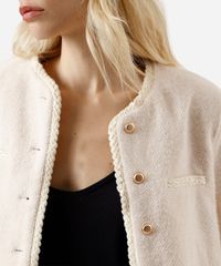 casaco feminino de tweed com botões off white