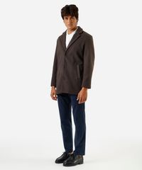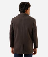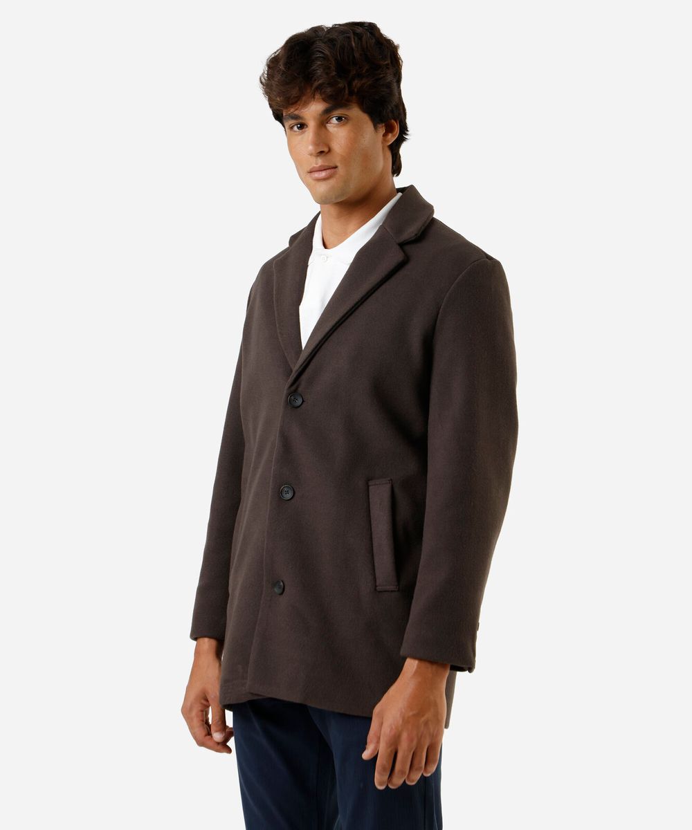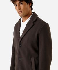 Casaco sobretudo masculino confeccionada em tecido plano encorpado e texturizado. A peça tem corte reto e o caimento é confortavelmente solto ao corpo. O modelo tem lapela clássica, fechamento por botões em vista e mangas longas com botão nos punhos. Possui dois bolsos, fenda posterior e acabamento forrado na parte interna.