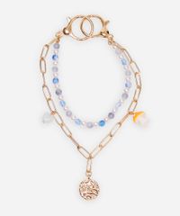 • Design de corrente dupla, combinando elos de metal alongados e um cordão com miçangas coloridas e pérolas artificiais.