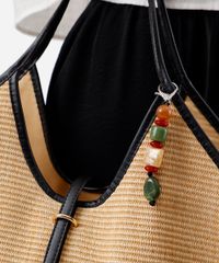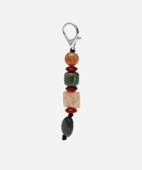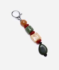 Chaveiro charm bag confeccionado em acetato resistente. O modelo de pedrarias com diferentes formatos e cores, fechamento por mosquetão.