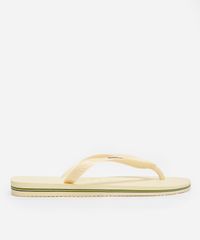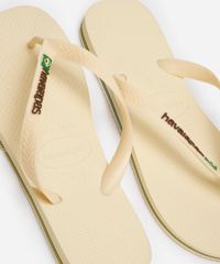 chinelo feminino havaianas brasil logo encardida bege