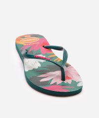 • Cabedal com tiras de dedo e o logo da marca em relevo, um clássico da Havaianas.