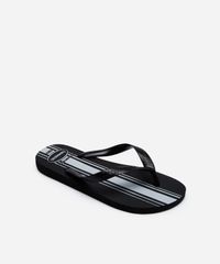 Chinelo desenvolvido em material emborrachado resistente. O modelo tem bico redondo e cabedal com tiras texturizadas e suporte para encaixar os dedos. Possui solado macio com estampa listrada e sola texturizada que auxilia no caminhar.