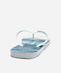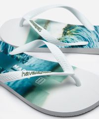 Chinelo desenvolvido em material emborrachado resistente. O modelo tem bico redondo e cabedal com tiras texturizadas e suporte para encaixar os dedos. Possui solado macio com estampa temática de Maraú na Bahia e sola texturizada que auxilia no caminhar.