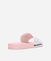 Chinelo infantil confeccionado em material emborrachado resistente. O modelo é slide, com tira larga e aplicação da personagem Hello Kitty. Possui solado macio com inscrição de marca e sola texturizada que auxilia no caminhar.