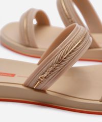 • Tiras com textura e um delicado detalhe metalizado, que adiciona um ponto de brilho ao calçado.