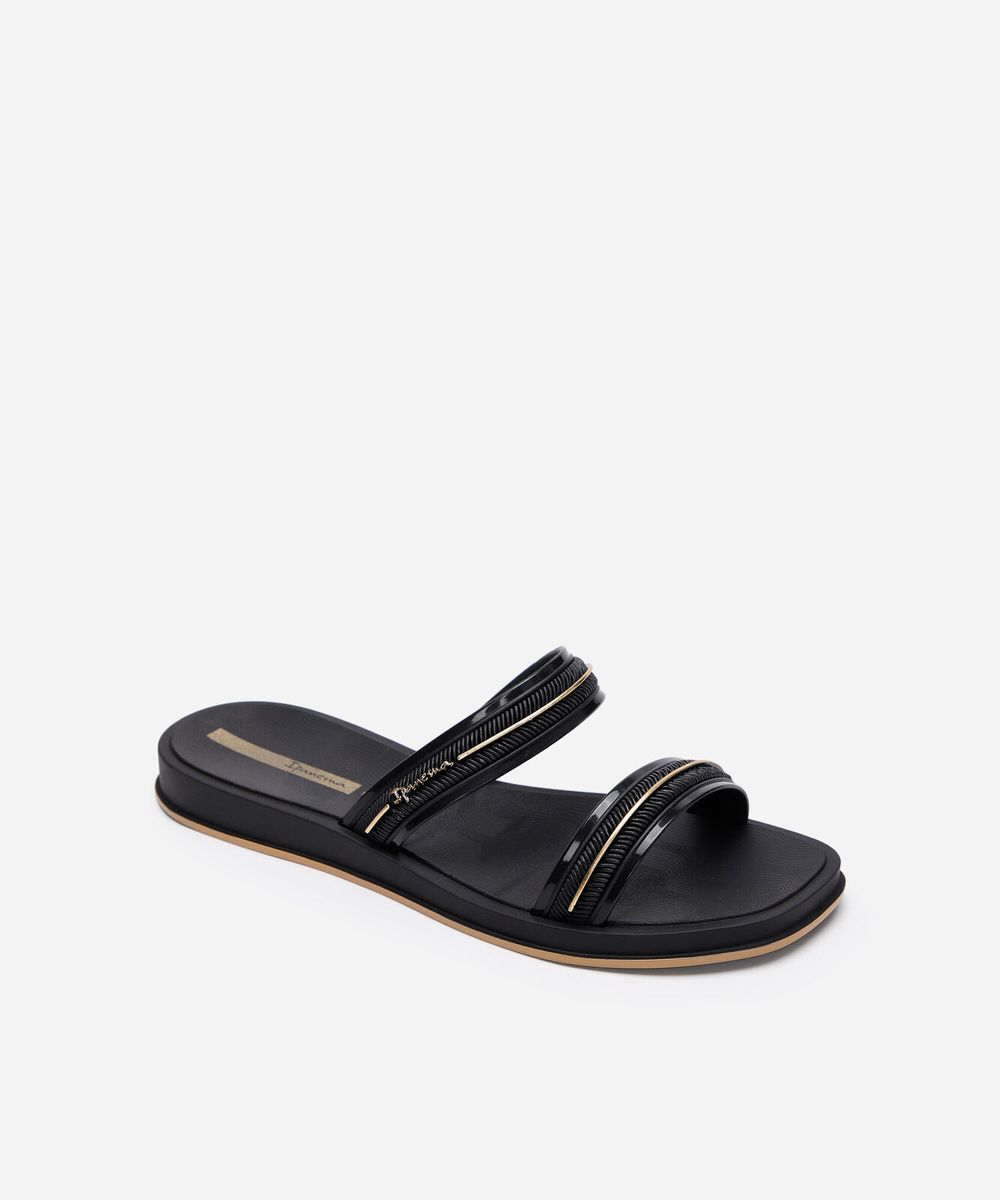 • Modelo slide com cabedal de duas tiras paralelas, oferecendo um calce fácil e seguro.