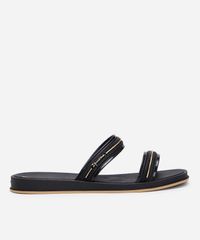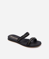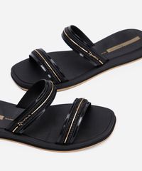 • Tiras com textura e um delicado detalhe metalizado, que adiciona um ponto de brilho ao calçado.