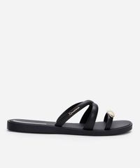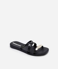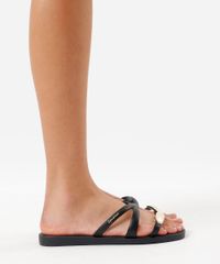 Chinelo slide Ipanema Metal Chic desenvolvido em material emborrachado resistente. O modelo tem bico quadrado, cabedal com três tiras texturizadas com detalhe metalizado. Possui solado macio e sola texturizada que auxilia no caminhar.