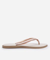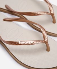 Chinelo Havaianas slim point desenvolvido em material emborrachado resistente. O modelo tem bico fino e cabedal com tiras finas, inscrição de marca e suporte para encaixar os dedos. Possui solado macio e sola texturizada contrastante que auxilia no caminhar.