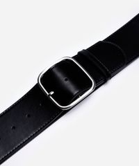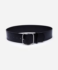 Cinto desenvolvido em material sintético resistente. O modelo é largo, com contorno pespontado passantes fixo e fechamento por fivela quadrada com níveis de ajuste.