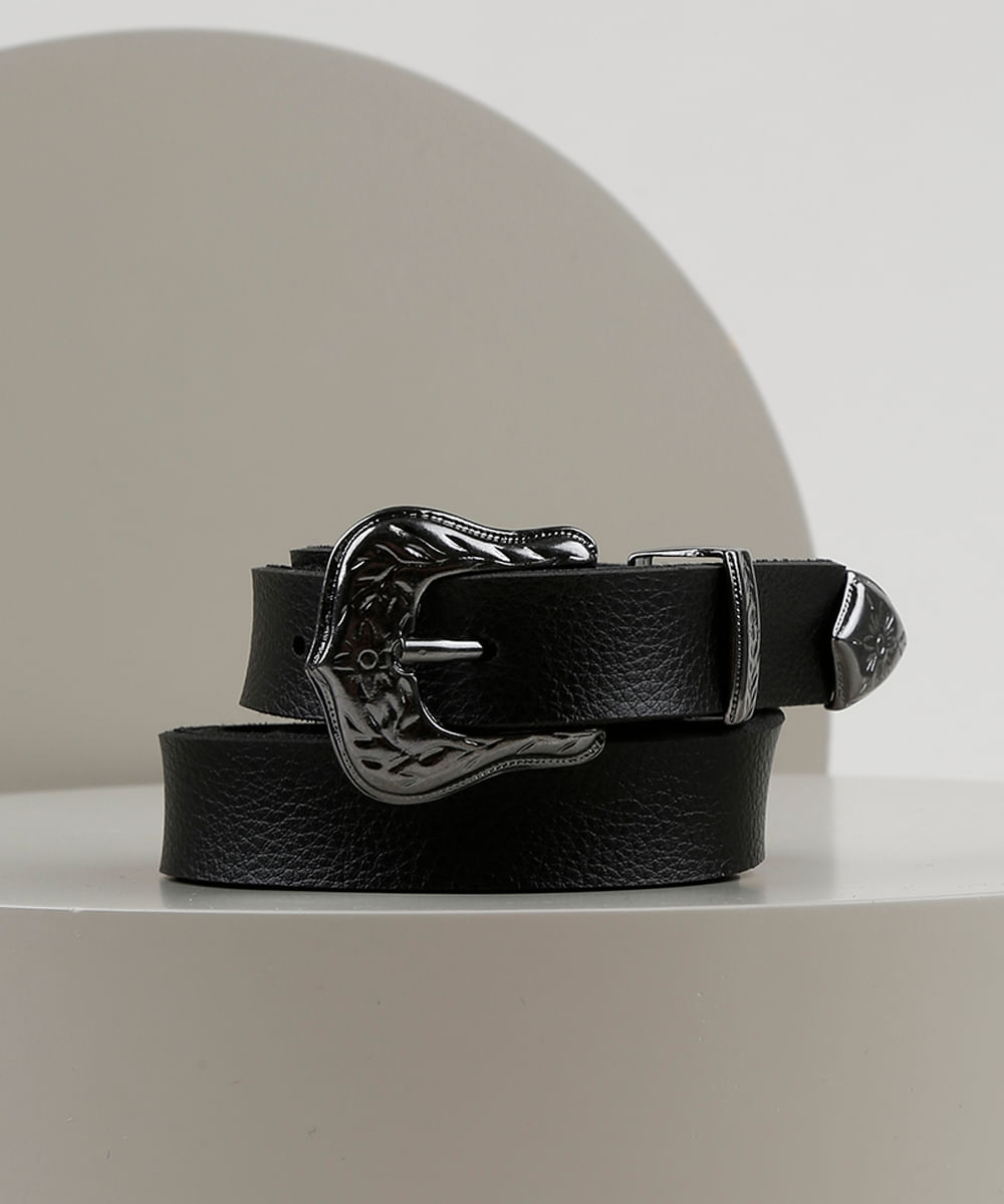 • Design western com fivela, passante e ponteira metálicos com detalhes trabalhados.
