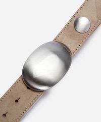 Cinto feminino desenvolvido em material sintético resistente. O acessório tem espessura média e fechamento por fivela de metal no banho prateado em formato oval orgânico, aplicação de tachas e níveis de ajustes. Composição: 100% poliuretano.