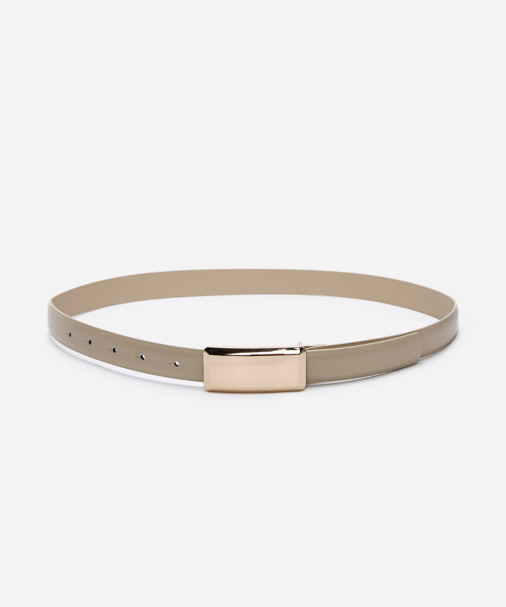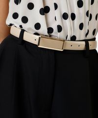 cinto fino fivela placa bege