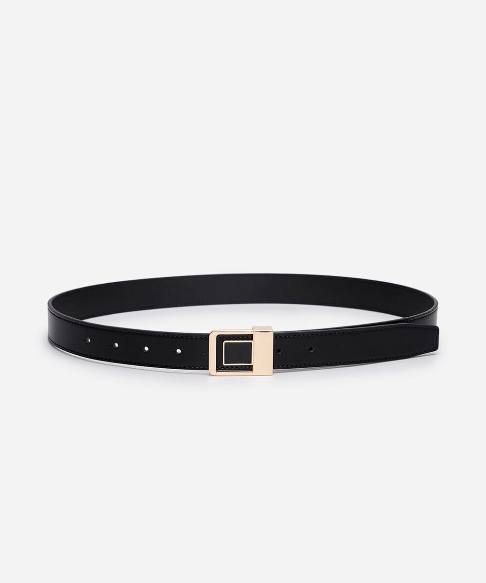 • Fivela quadrada de metal com acabamento dourado e detalhe interno, conferindo um visual elegante e contemporâneo.