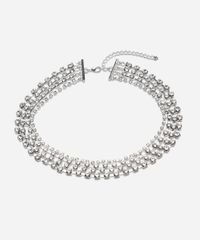 colar feminino de strass em camadas prateado - UNICO