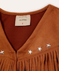 Adicione um toque de diversão e estilo ao guarda-roupa da sua pequena com este colete infantil. Confeccionado em malha de suede com toque macio, ele garante conforto para todas as brincadeiras. Com uma inspiração country cheia de personalidade, é a peça perfeita para compor looks criativos e autênticos, seja para o dia a dia ou para uma festa temática.