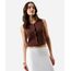 A versatilidade deste colete feminino permite criar looks incríveis. Use-o fechado como um top, combinado com uma saia longa de cetim ou uma calça de alfaiataria para um visual elegante e contemporâneo. Para uma proposta mais casual, experimente usá-lo aberto sobre uma camiseta básica e jeans. É uma peça que transita facilmente entre o escritório e um encontro com amigos.