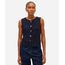 Colete feminino confeccionado em tricot texturizado com viscose. A peça tem a modelagem e construção reta e o caimento é levemente ajustado ao corpo. O modelo tem decote redondo, fechamento por botões em vista e alças largas.
