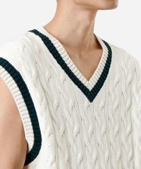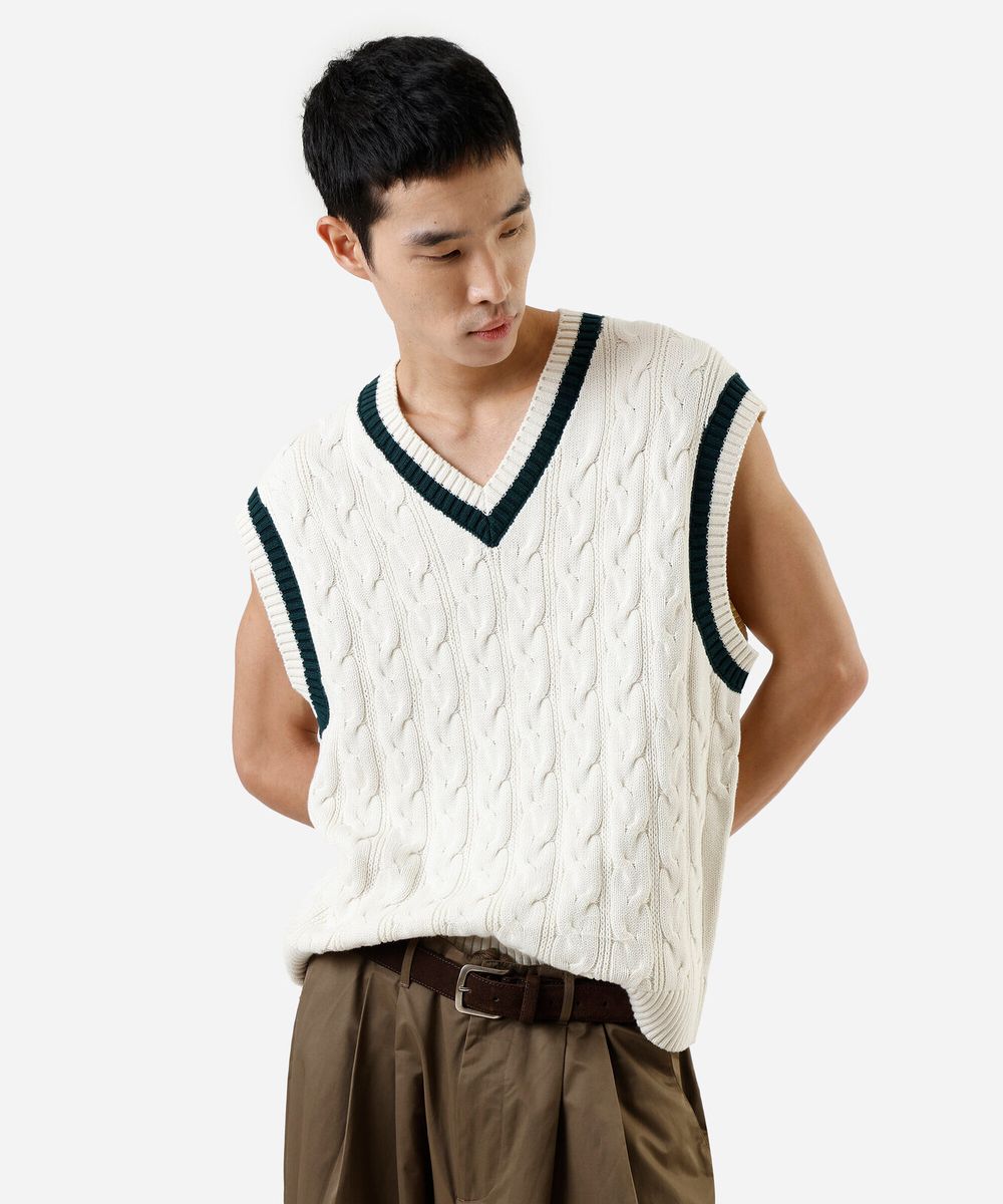 Adicione um toque de estilo clássico e moderno ao seu visual com este colete de tricô masculino. Inspirado na estética preppy, este casaco masculino sem mangas é a peça perfeita para criar sobreposições cheias de personalidade. Confeccionado em tricô de algodão, ele oferece um toque macio e um caimento confortável, ideal para acompanhar você em diversas ocasiões.