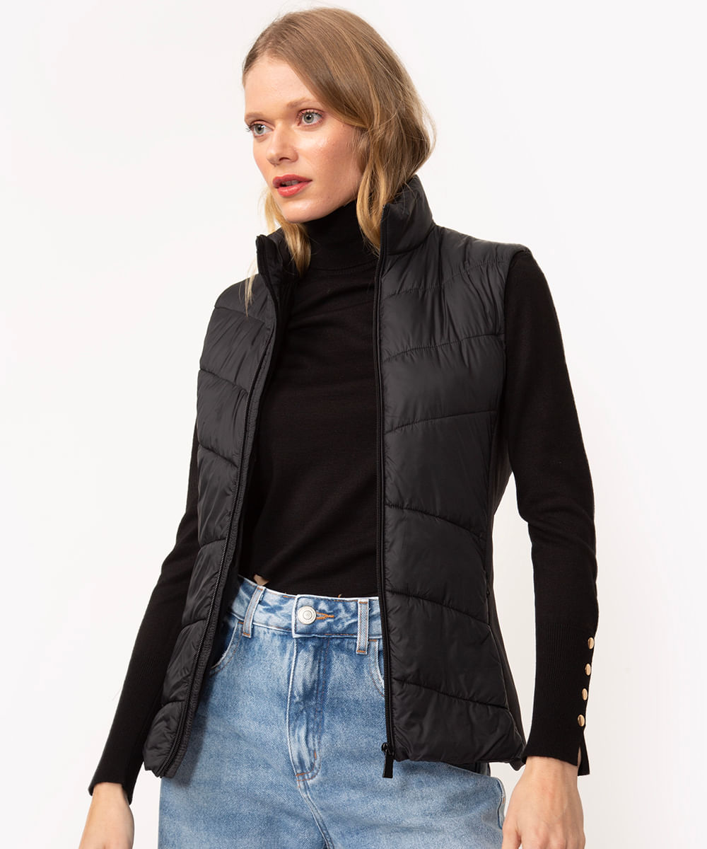 Este colete puffer feminino é a terceira peça que faltava para transformar seus looks de inverno. Unindo o conforto do enchimento acolchoado com um design moderno, ele é perfeito para te manter aquecida com muito estilo. Sua versatilidade permite criar desde combinações casuais até as mais arrumadas, sendo um item indispensável no guarda-roupa.