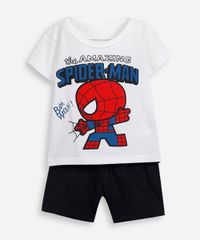 conjunto curto infantil de algodão homem aranha off white