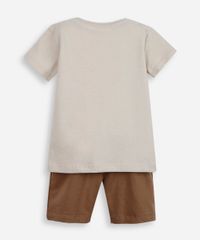 Conjunto curto infantil confeccionado em malha de algodão. Composto por camiseta e short. A camiseta tem modelagem reta, caimento solto, mangas curtas, gola redonda e estampa da Patrulha Canina. O short tem modelagem reta, caimento solto, cós com elástico embutido e acabamento pespontado nas barras.