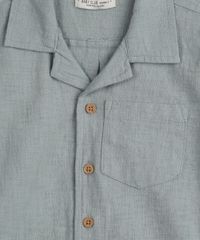 • Camisa com gola esporte, mangas curtas com martingale (tira com botão) e fechamento frontal por botões.