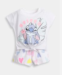 Este conjunto infantil do Stitch é a escolha perfeita para vestir as pequenas com muito conforto e diversão. Composto por uma blusa e um short, o conjunto é prático para o dia a dia e ideal para as mais diversas brincadeiras. Confeccionado em malha de algodão, oferece um toque macio e respirável, garantindo o bem-estar durante todo o uso.