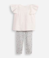 Economia de R$ 50,00Este conjunto infantil é a combinação perfeita de charme e conforto para o dia a dia da sua bebê. Composto por uma bata delicada e uma calça legging estampada, o look é prático e cheio de estilo para todos os momentos. Confeccionado com tecidos macios, ele garante que a pequena fique à vontade para brincar e explorar o mundo.