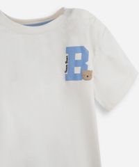 Conjunto infantil composto por duas peças confeccionadas em algodão. Camiseta com modelagem reta, gola redonda, mangas curtas, estampa frontal "team bear", ombro com botões de pressão e acabamento pespontado. Bermuda com modelagem reta, cintura média com elástico embutido e cordão decorativo, detalhes com listras verticais decorativas e acabamento pespontado.
