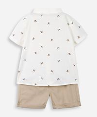 Conjunto infantil composto por duas peças confeccionadas em algodão. A camisa possui gola redonda, mangas curtas, estampa temática com aviãozinhos, caimento reto, acabamento pespontado e fechamento frontal por botões. O short possui cintura alta, cós elástico com cordão embutido para ajustes, bolso frontal, caimento reto, barra fixa dobrada e acabamento pespontado. Composição: 100% algodão Instruções de lavagem: - Lavar à temperatura máxima de 40ºC - Proibido o alvejamento - Não secar em tambor - Secagem em varal à sombra - Passar à temperatura média - Limpeza à úmido, processo normal