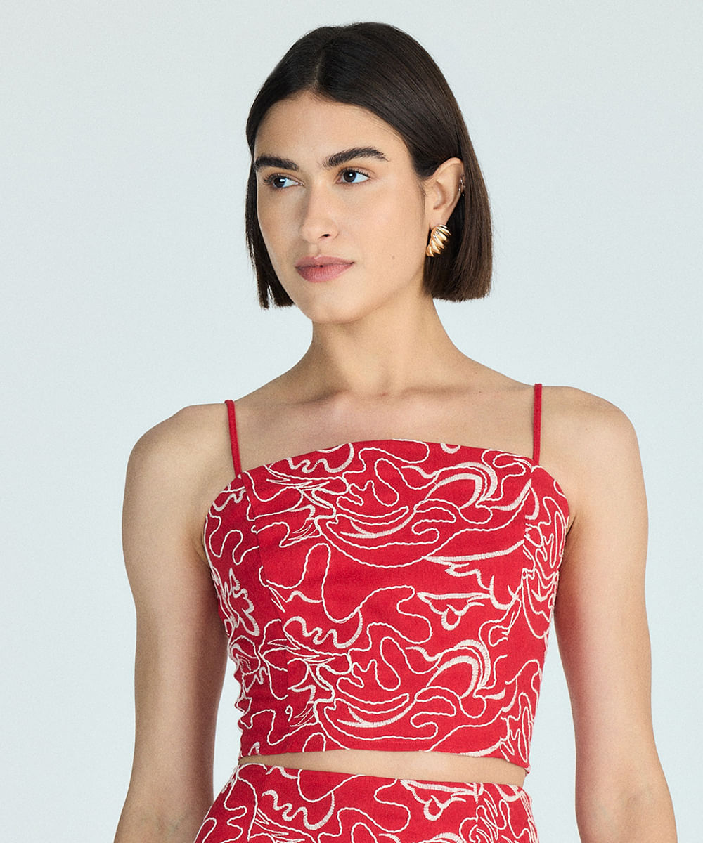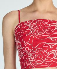 Renove seu guarda-roupa com este top cropped feminino, uma peça que une sofisticação e conforto. O design moderno, com um delicado bordado abstrato, é perfeito para criar looks cheios de personalidade. Confeccionado em um tecido plano com linho em sua composição, o modelo oferece um toque elegante e um caimento confortável, ideal para os dias mais quentes.