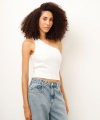 Blusa feminina confeccionada em tecido canelado com toque macio. A peça básica possui modelagem cropped com caimento alongado e justo ao corpo, decote ombro único, alça média, acabamentos me viés e pespontado.