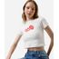 Cropped baby look feminino confeccionada em malha macia com algodão e estampa localizada escrito "endless coast" e ilustração de morango na parte frontal. A peça tem a modelagem reta e o caimento é confortavelmente ajustado ao corpo. O modelo tem gola redonda e mangas são curtas com acabamento pespontado nos punhos e na barra.