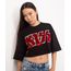 Cropped confeccionado em malha de algodão. Possui caimento solto, gola redonda canelada, mangas curtas e estampa frontal da banda Kiss.