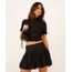 Cropped feminino confeccionado em malha de algodão peruano. A peça tem modelagem levemente solta ao corpo. O modelo tem gola alta em malha canelada e mangas curtas.