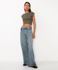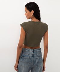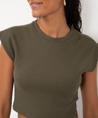 Cropped confeccionado em malha encorpada com algodão e toque texturizado. Modelo com caimento solto, decote redondo, mangas curtas e barra pespontada.