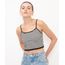 Blusa feminina confeccionada em malha de poliamida com elasticidade e toque macio. A peça possui modelagem cropped com caimento justo ao corpo, decote quadrado, alças finas, padronagem listrada e acabamento canelado.