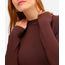 Cropped confeccionado em malha de poliamida canelada. A peça tem caimento ajustado, comprimento curto, sua gola é alta e as mangas longas além da barra possui acabamento pespontado.