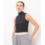 Blusa confeccionada em malha de poliamida com elasticidade. A peça possui gola alta, cavas regulares, caimento reto, comprimento cropped e acabamento pespontado.