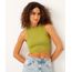 Top feminino confeccionado em malha de poliamida com elasticidade e toque macio. A peça possui modelagem cropped com caimento justo ao corpo, decote halterneck, alças médias, tecido canelado, acabamentos em viés e pespontado interno.