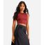 Cropped confeccionado em malha macia. Possui caimento ajustado, comprimento curto, decote redondo, alças médias, a parte frontal tem forro e barra pespontada.