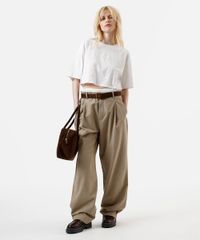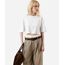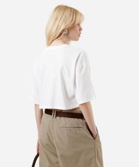 Cropped feminino confeccionada em malha macia de algodão com estampa localizada texturizada do Mickey na parte frontal. A peça tem a modelagem reta e o caimento é confortavelmente solto ao corpo. O modelo tem gola redonda em tecido com textura canelada e as mangas são curtas com acabamento pespontado nos punhos e na barra.