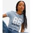Cropped feminino confeccionada em malha macia de algodão com estampa localizada escrito "86 New York Brooklyn" na parte frontal. A peça tem a modelagem reta e o caimento é confortavelmente ajustado ao corpo. O modelo tem gola redonda e as mangas são curtas com acabamento pespontado nos punhos e na barra.