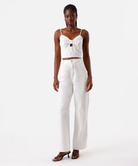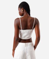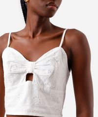 cropped feminino de laise alça fina com recorte off white