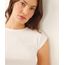 Cropped feminino confeccionado em malha texturizada. A peça tem modelagem confortavelmente ajustada ao corpo. O modelo tem decote redondo e acabamento simples nas cavas.